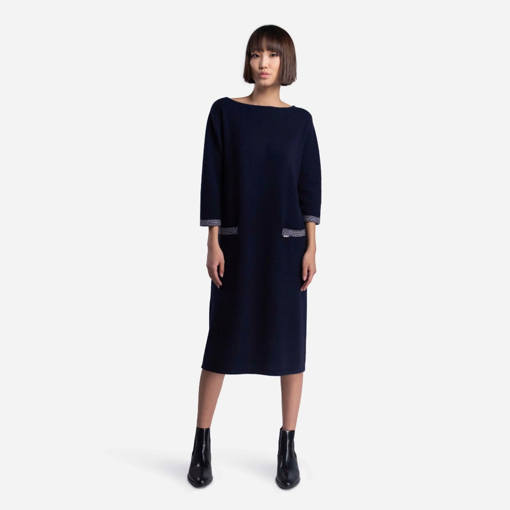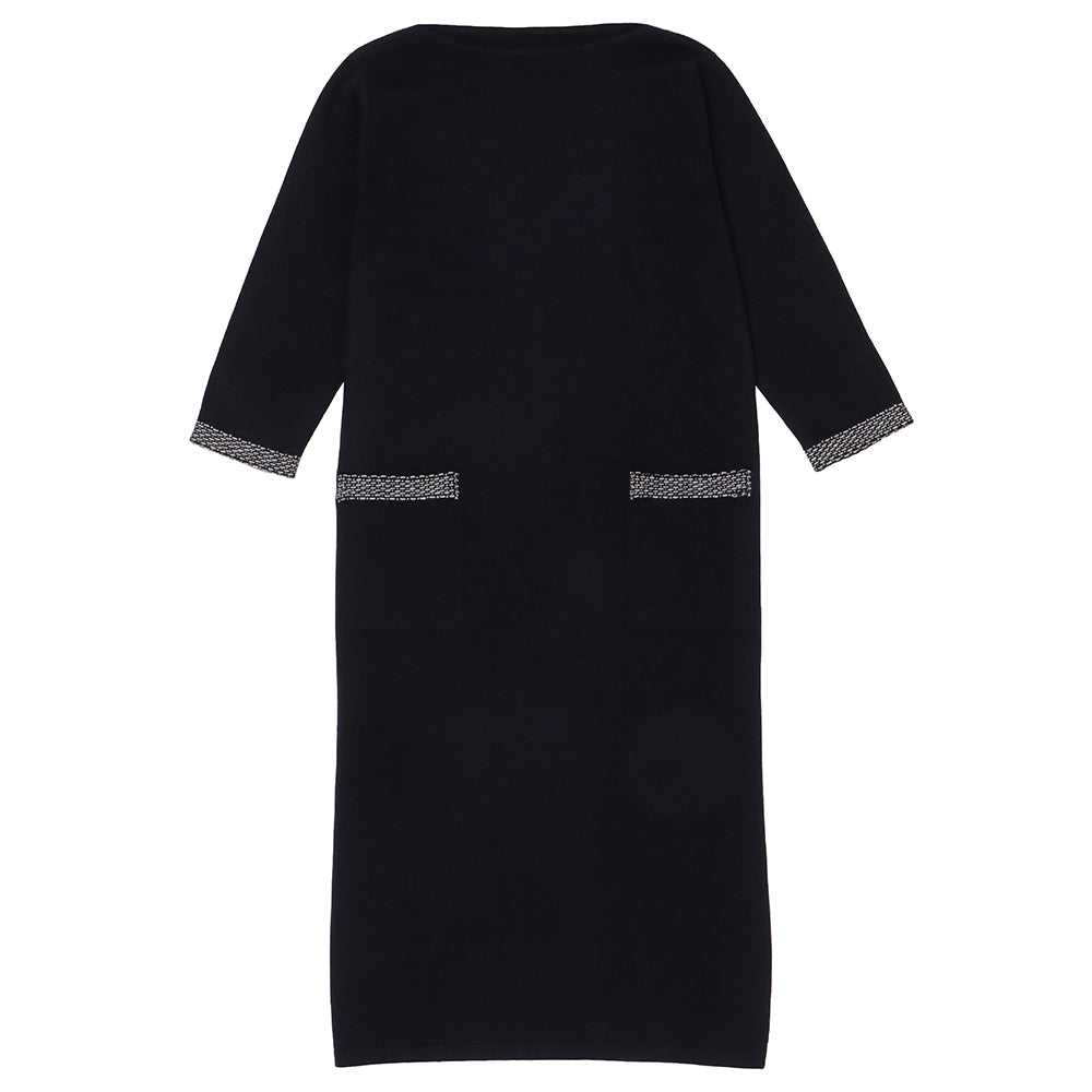 オーガニックカシミヤ100%ボートネック・七分袖ボックスワンピース 13149